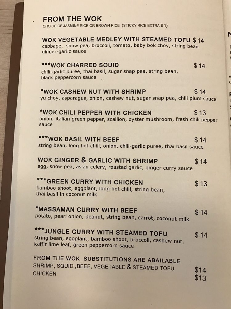 FROM THE WOK - Served with Jasmine Rice/Brown Rice (Sticky Rice for extra $) - Protein Substitution is available. Spiciness is adjustable.